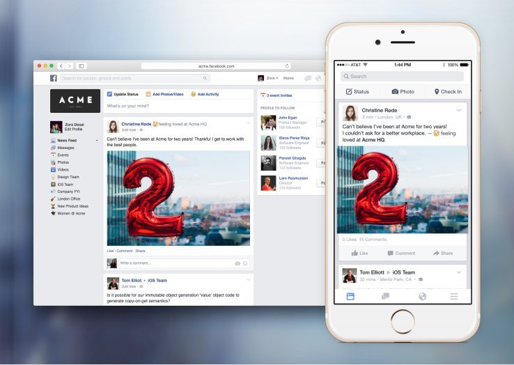 Facebook At Work saat ini masih dalam tahap beta edisi terbatas, tapi akan segera tersedia secara luas di website, perangkat Android dan iOS. Aplikasi ini diharapkan dapat menjadi sarana komunikasi karyawan yang mudah dan aman, dan menjadi alternatif email.